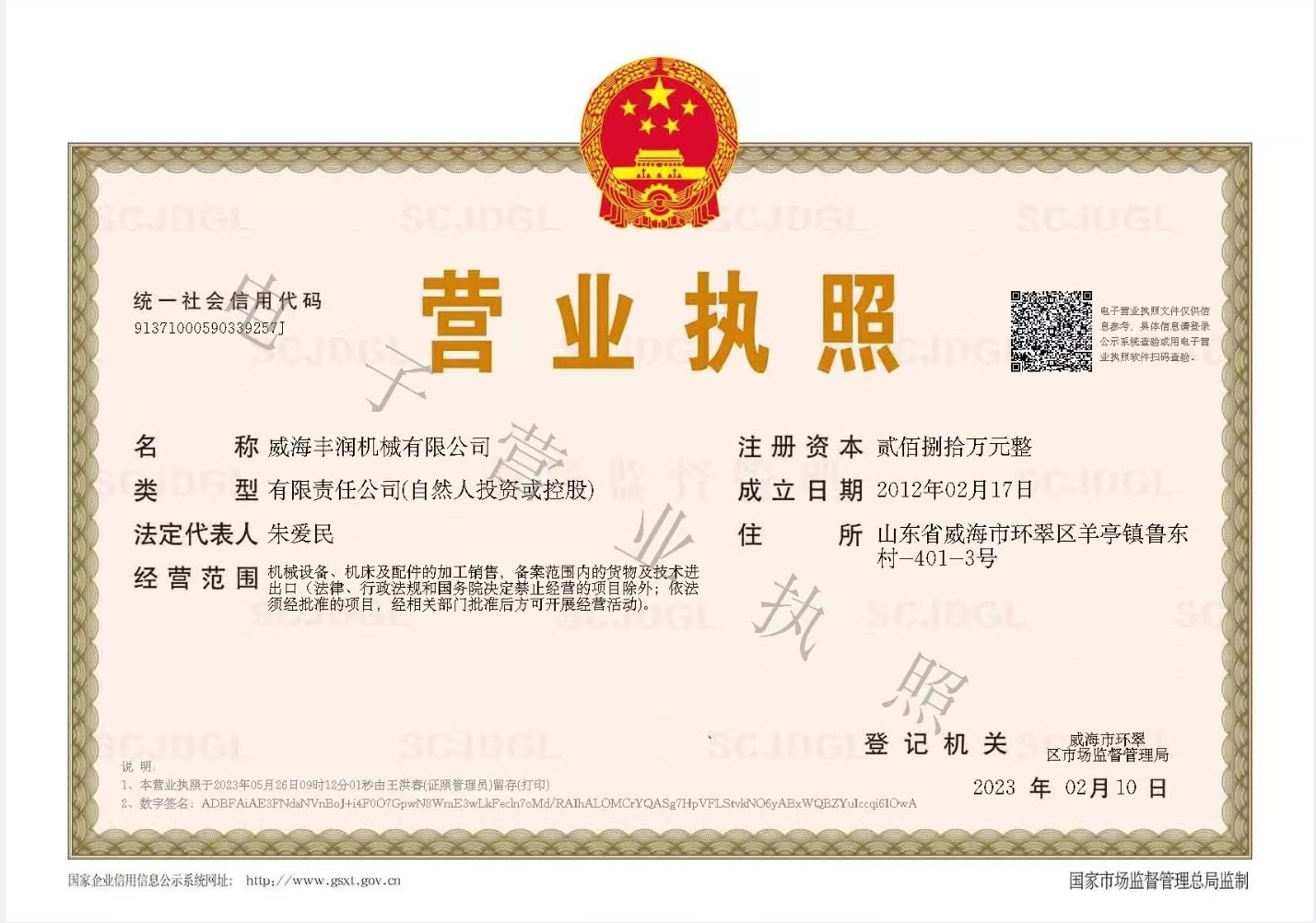 Due to the expansion of our company's production and the need to purchase land and build new factories in Lingang District, a new company must be registered in Lingang. Therefore, we have established a new company - Weihai Fengrun Intelligent Equipment Co., Ltd. The new company and Weihai Fengrun Machinery Co., Ltd. are actually the same company. Thank you to both new and old users for their support!